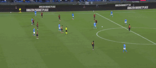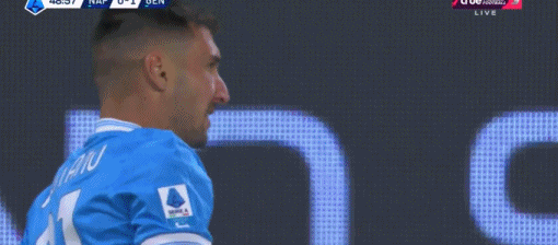 第33分钟,库菲人球分过后传中,埃哈托尔脚后跟巧射破门,热那亚1-0那不勒斯