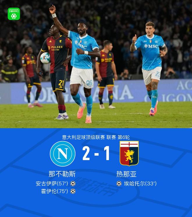 那不勒斯两人伤退2-1逆转热那亚,安古伊萨、霍伊伦破门